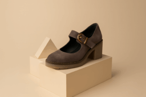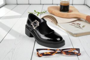 Δερμάτινη γόβα Mary Jane με μπαρέτα και τακούνι 4 εκ 16053
