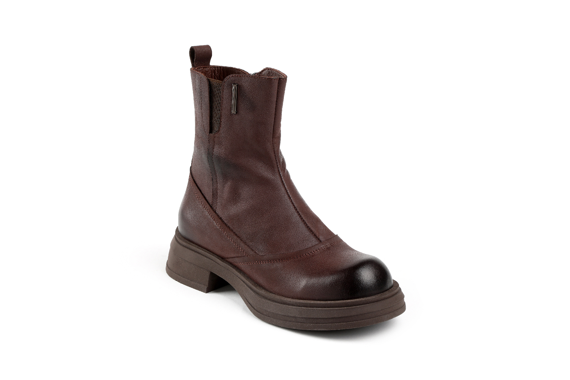 Γυναικεία Δερμάτινα Μποτάκια – Καφέ με Χοντρή Σόλα
