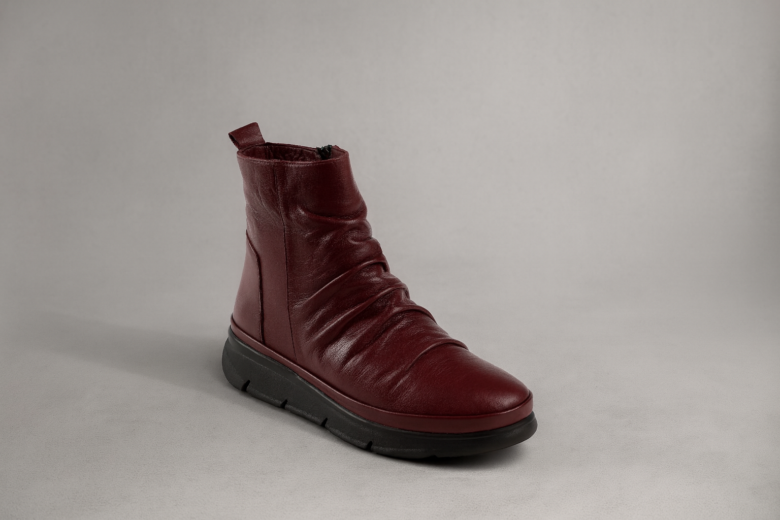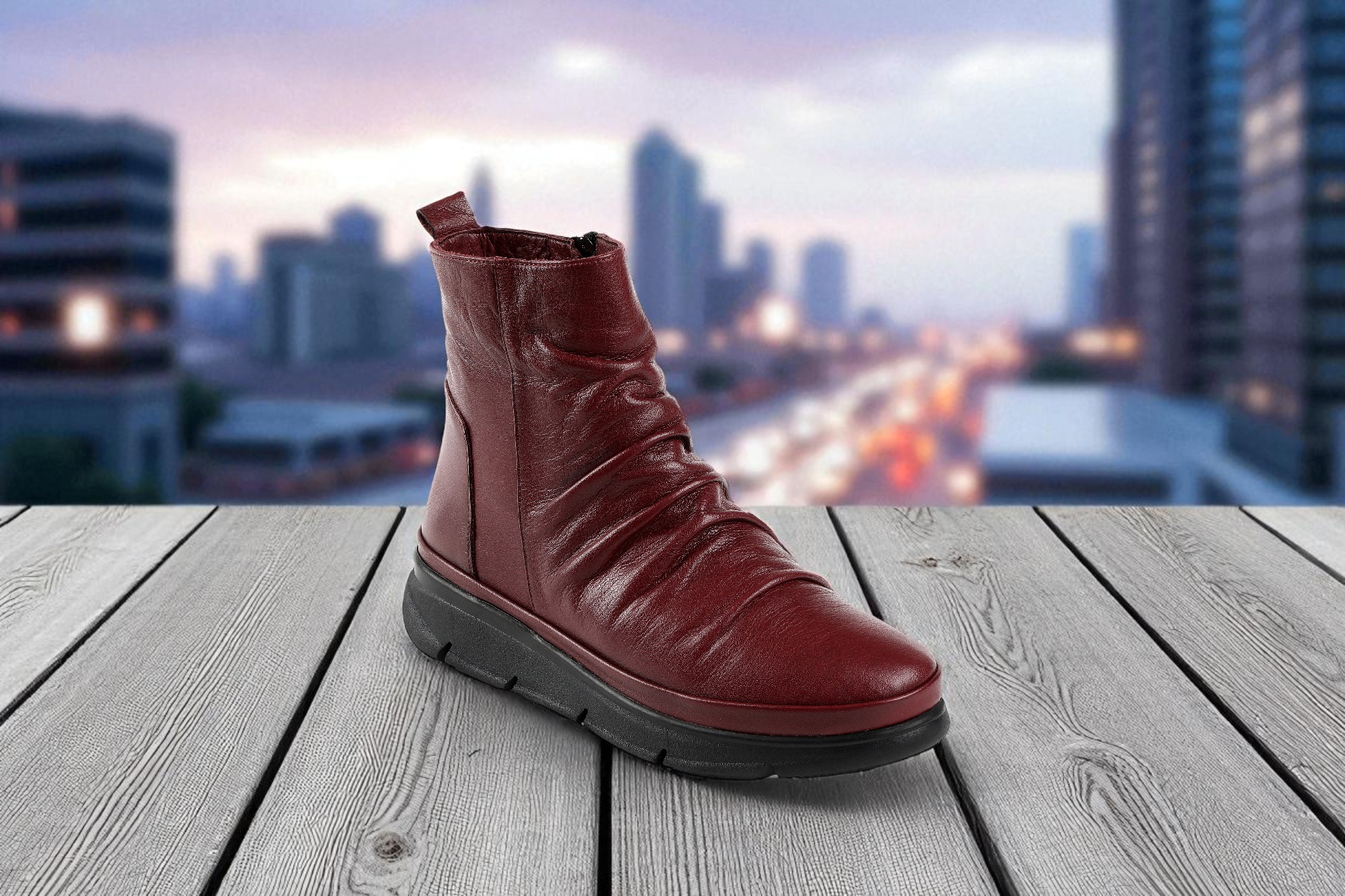 Γυναικεία Δερμάτινα Μποτάκια Μπορντό με Μαύρη Σόλα – Άνεση & Στυλ για Κάθε Μέρα