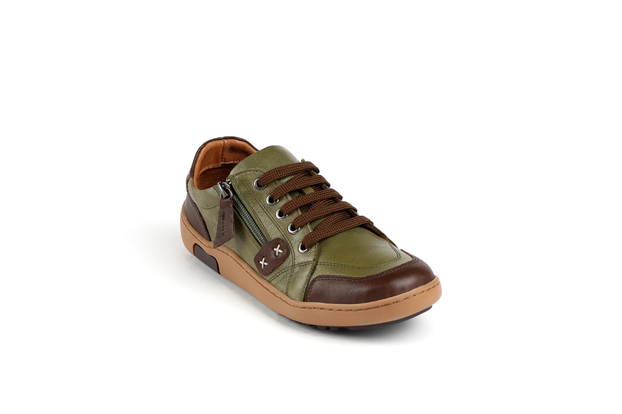 Γυναικεία Δερμάτινα Παπούτσια Casual– Λαδί & Καφέ με Κορδόνια και Πλαϊνό Φερμουάρ