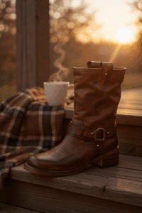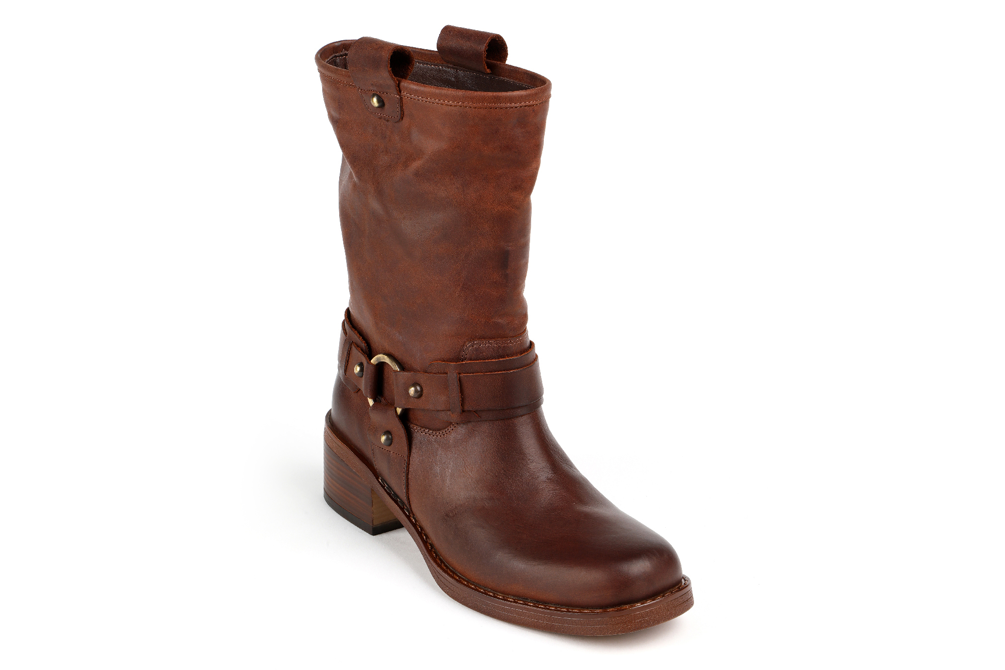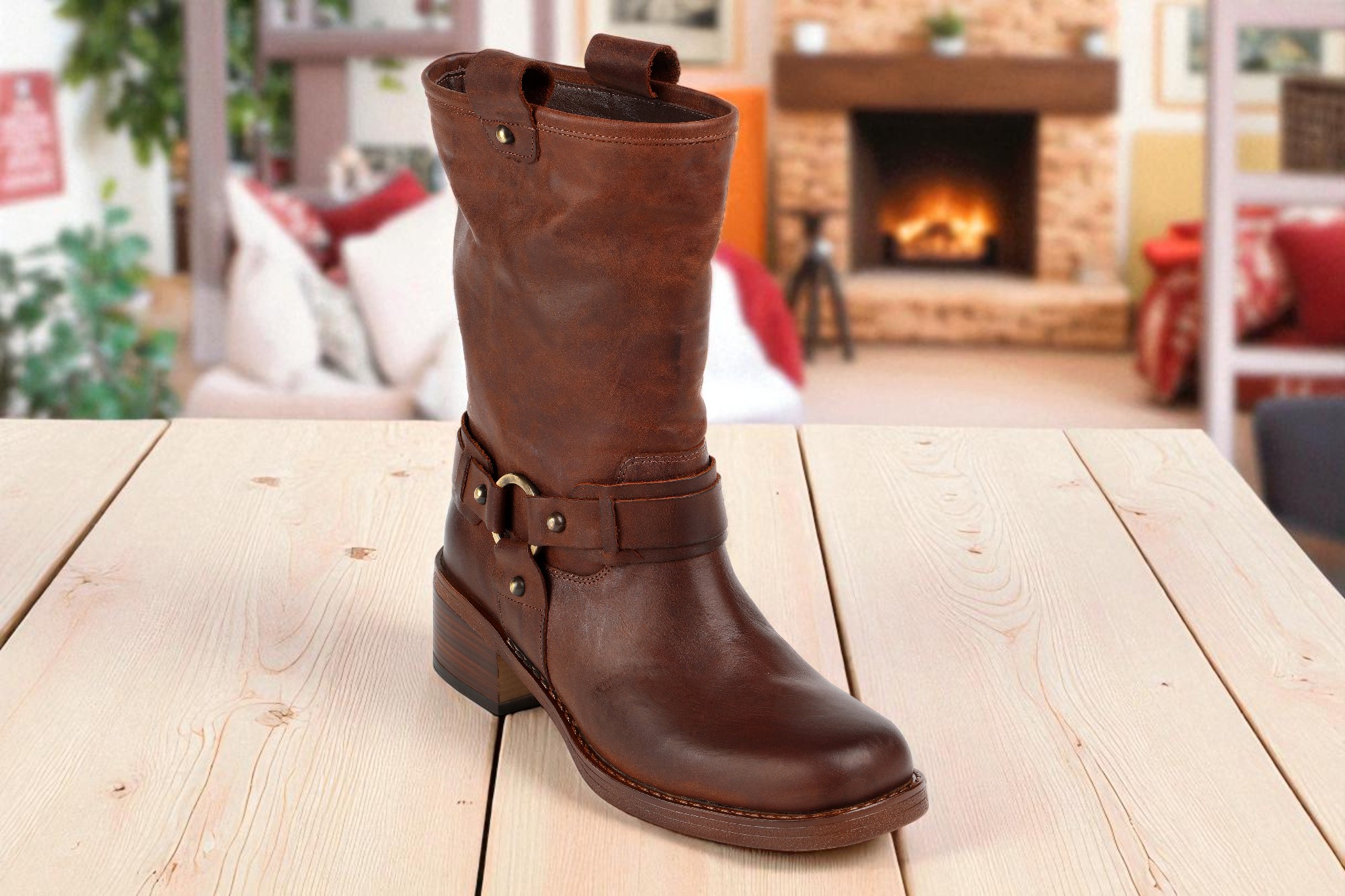 Δώσε western χαρακτήρα στο φθινοπωρινό και χειμερινό σου στυλ με αυτή την εντυπωσιακή γυναικεία δερμάτινη μπότα σε καφέ απόχρωση. Με καλοδουλεμένο φυσικό δέρμα, σταθερό χαμηλό τακούνι με όψη ξύλου και διακοσμητικό λουρί με μεταλλικά στοιχεία, προσφέρει μια αυθεντική, ανεπιτήδευτα στιλάτη εμφάνιση.