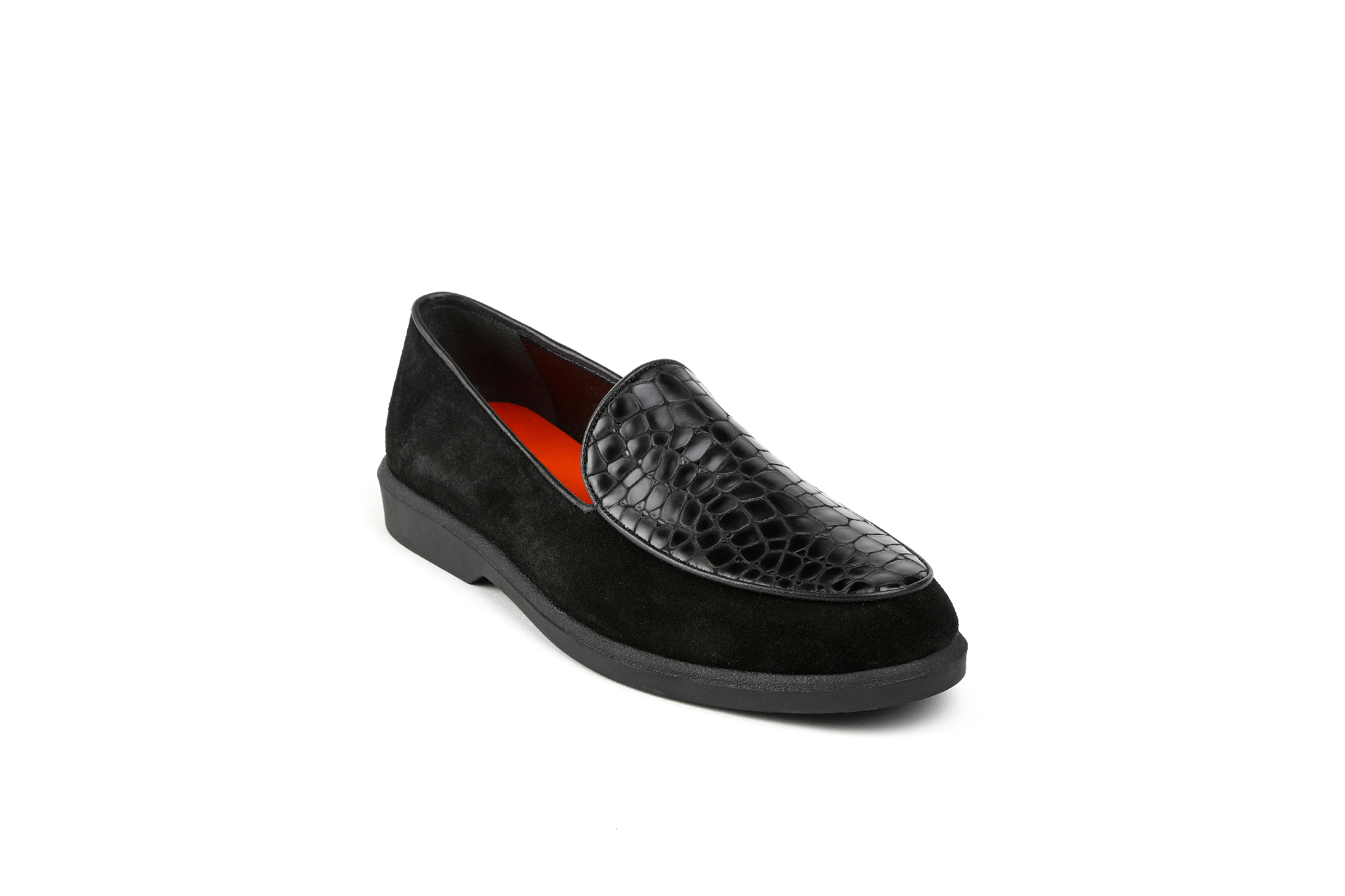 Γυναικεία Μοκασίνια Μαύρο με Κροκό Σχέδιο & Suede Υφή – Κομψότητα & Στυλ σε Κάθε Βήμα
