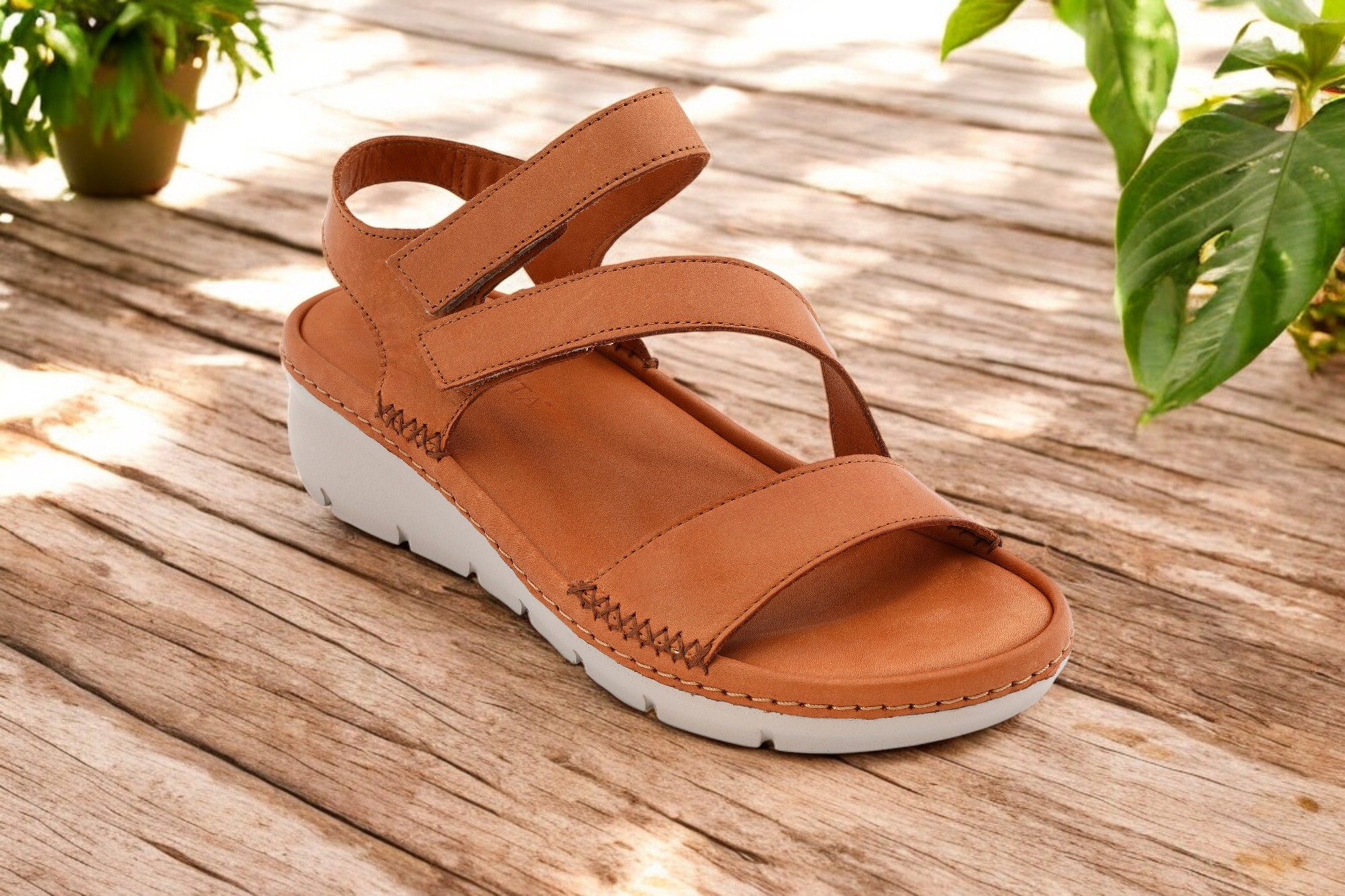 Ανακαλύψτε την απόλυτη άνεση και στυλ με αυτά τα γυναικεία πέδιλα σε κομψό ταμπά χρώμα. Κατασκευασμένο από μαλακό, υψηλής ποιότητας δέρμα, διαθέτει τρεις ρυθμιζόμενους ιμάντες με αυτοκόλλητο velcro για τέλεια εφαρμογή σε κάθε τύπο ποδιού.