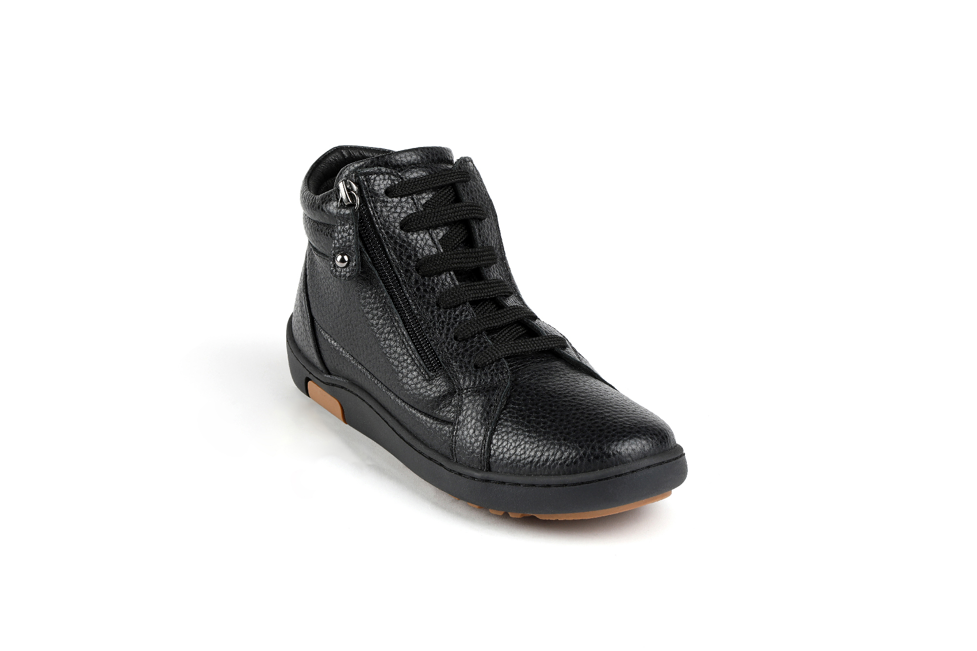 Γυναικεία Casual Μποτάκια – Μαύρο Δερμάτινο με Φερμουάρ και κορδόνια