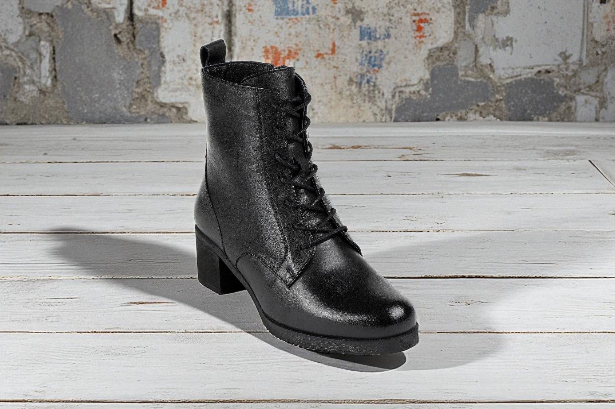 Δερμάτινα Γυναικεία Μποτάκια Polaris Anatomic με Χαμηλό Τακούνι 5 cm & Κορδόνια