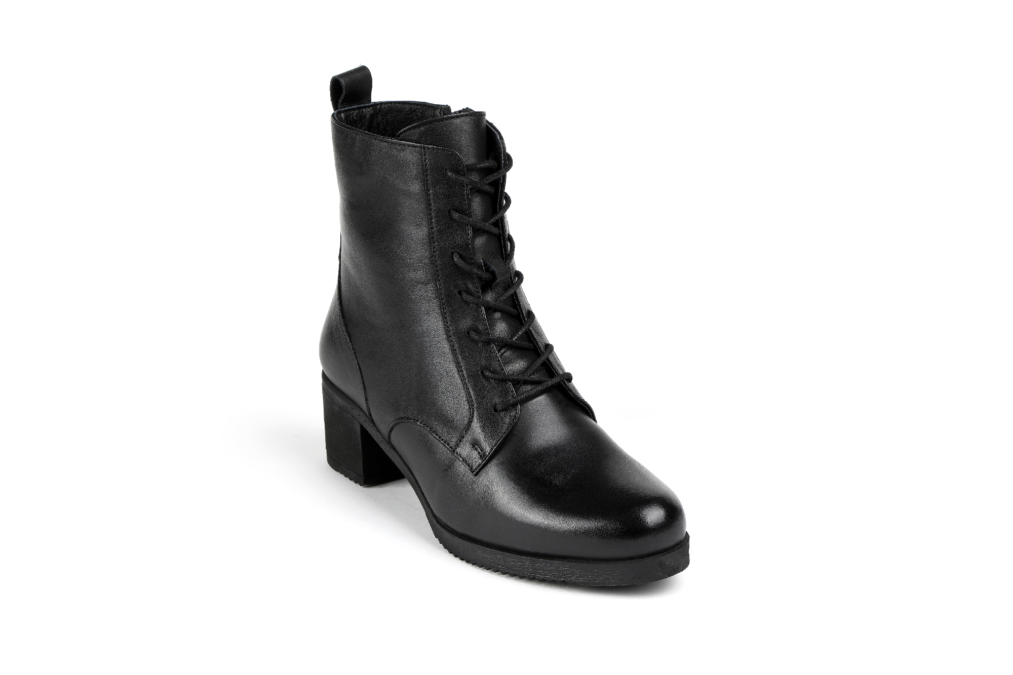 Το ψηλό σταθερό τακούνι προσφέρει θηλυκότητα χωρίς να κουράζει, ενώ τα κορδόνια στο μπροστινό μέρος επιτρέπουν προσαρμοσμένη εφαρμογή. Διαθέτουν πλαϊνό φερμουάρ για εύκολη χρήση και ανατομικό δερμάτινο πάτο, που στηρίζει το πόδι καθ’ όλη τη διάρκεια της ημέρας.