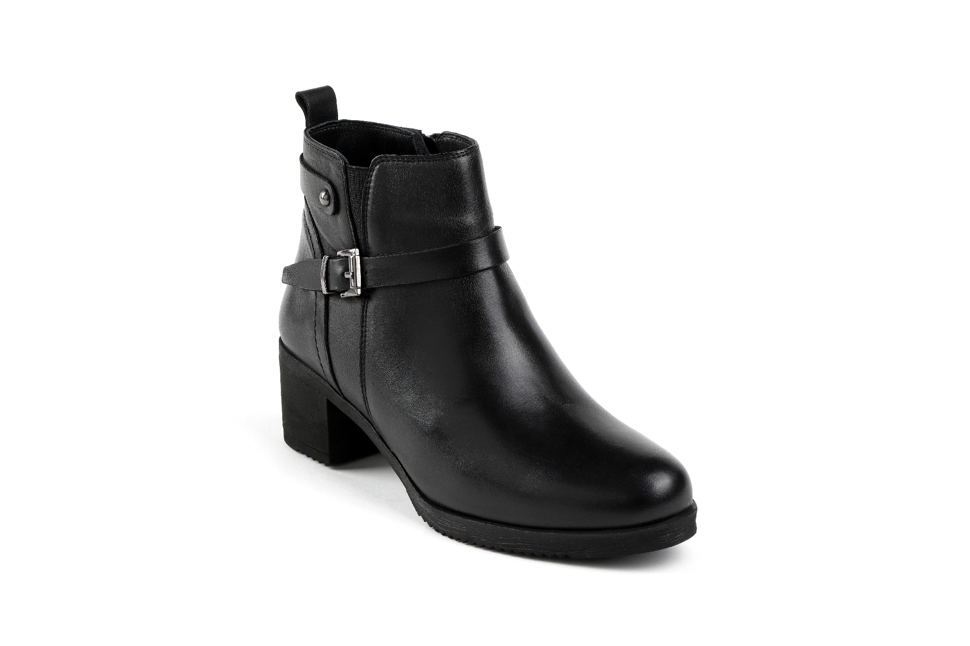 Δερμάτινα Γυναικεία Μποτάκια με Τετράγωνο Τακούνι & Διακοσμητική Αγγράφα – Polaris Anatomic