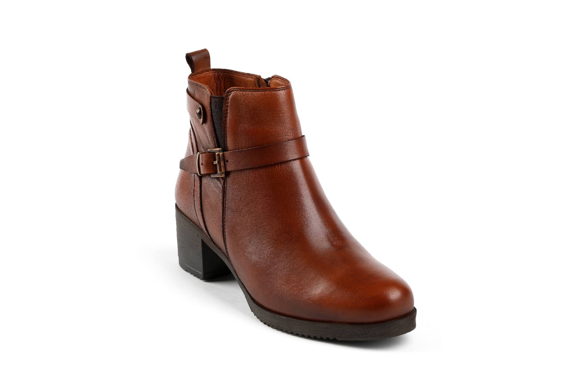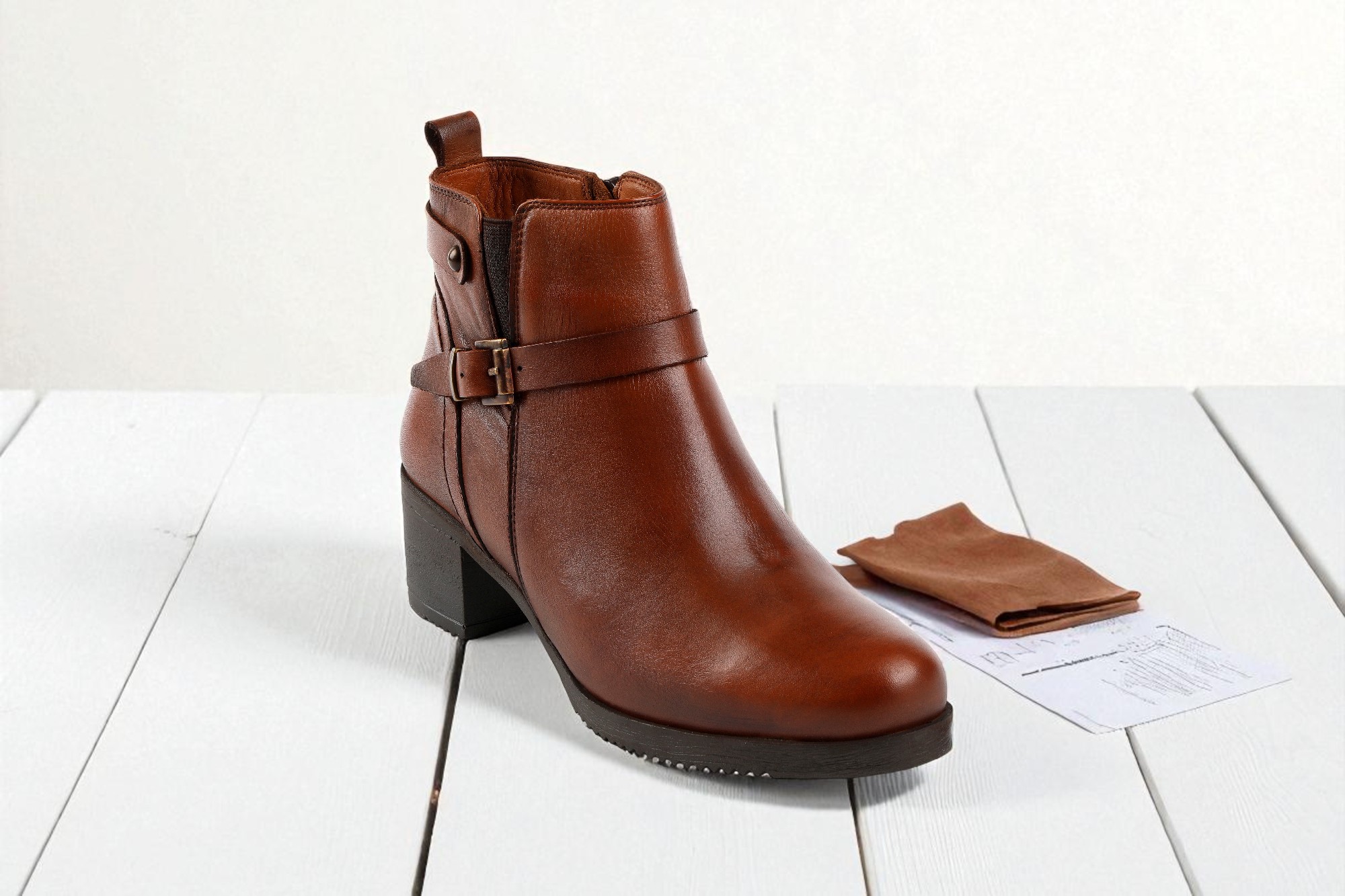 Δερμάτινα Γυναικεία Μποτάκια με Τετράγωνο Τακούνι & Διακοσμητική Αγγράφα – Polaris Anatomic
