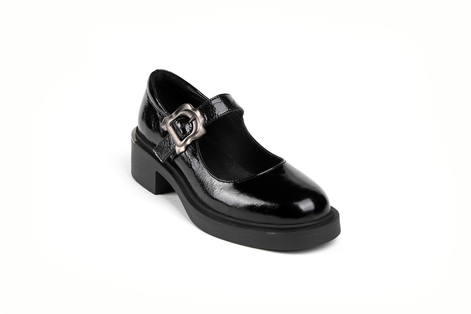 Ανακαλύψτε την απόλυτη ισορροπία ανάμεσα σε στυλ και άνεση με αυτές τις δερμάτινες γόβες τύπου Mary Jane. Κατασκευασμένες από φυσικό δέρμα λουστρίνι, διαθέτουν εντυπωσιακή μεταλλική αγκράφα σε μοναδικό σχέδιο που την καθιστά ιδανική επιλογή για μοντέρνες αλλά και διαχρονικές εμφανίσεις.