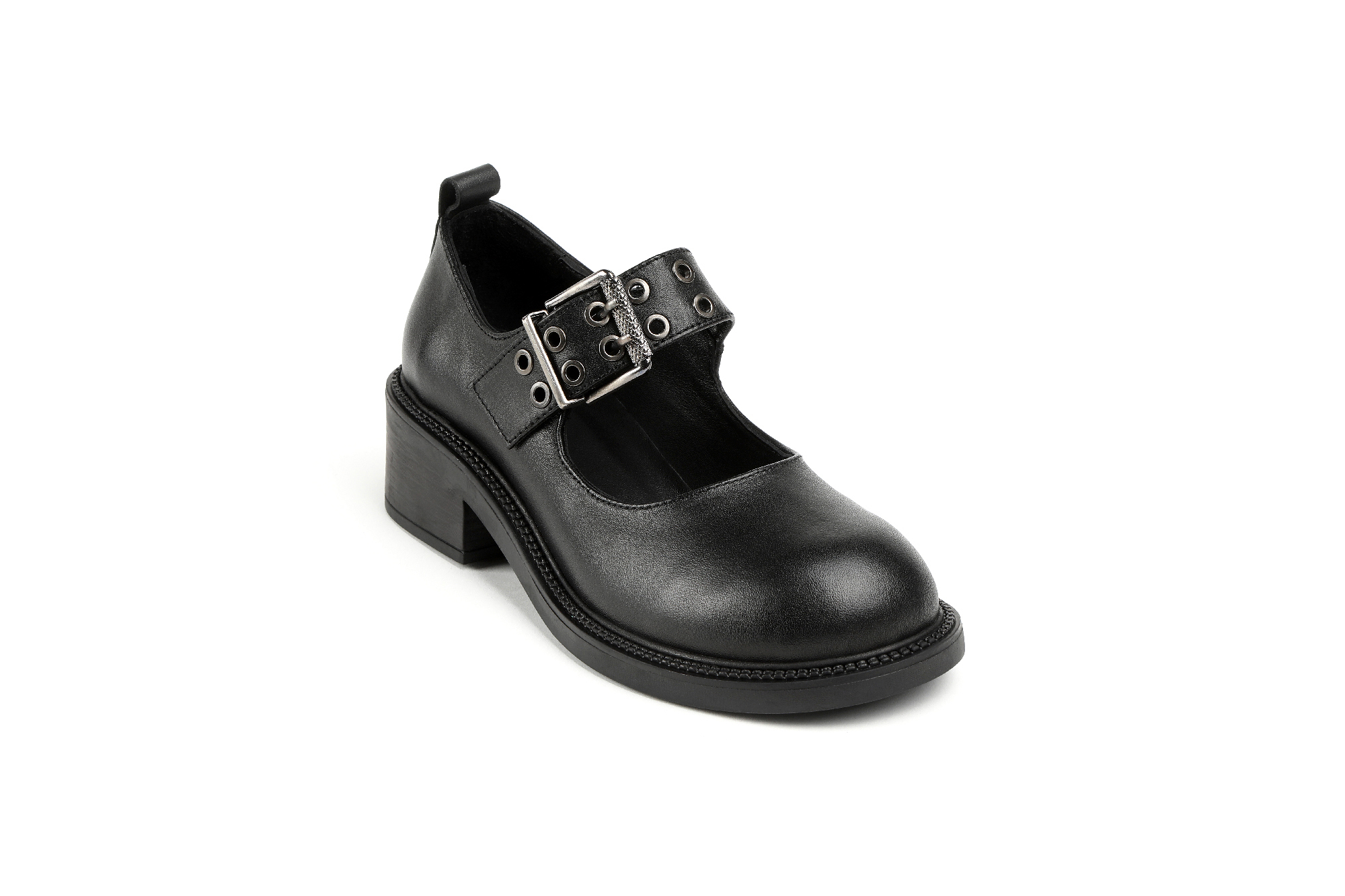 Ανακαλύψτε την απόλυτη ισορροπία ανάμεσα σε στυλ και άνεση με αυτές τις δερμάτινες γόβες Mary Jane. Κατασκευασμένες από φυσικό δέρμα λουστρίνι, διαθέτουν εντυπωσιακή μεταλλική αγκράφα σε μοναδικό σχέδιο που την καθιστά ιδανική επιλογή για μοντέρνες αλλά και διαχρονικές εμφανίσεις.